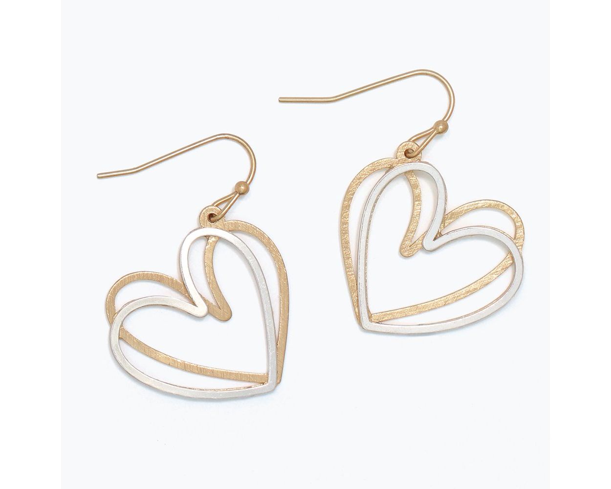 Brushed Two Tone Open Heart Hanging Wire Earrings