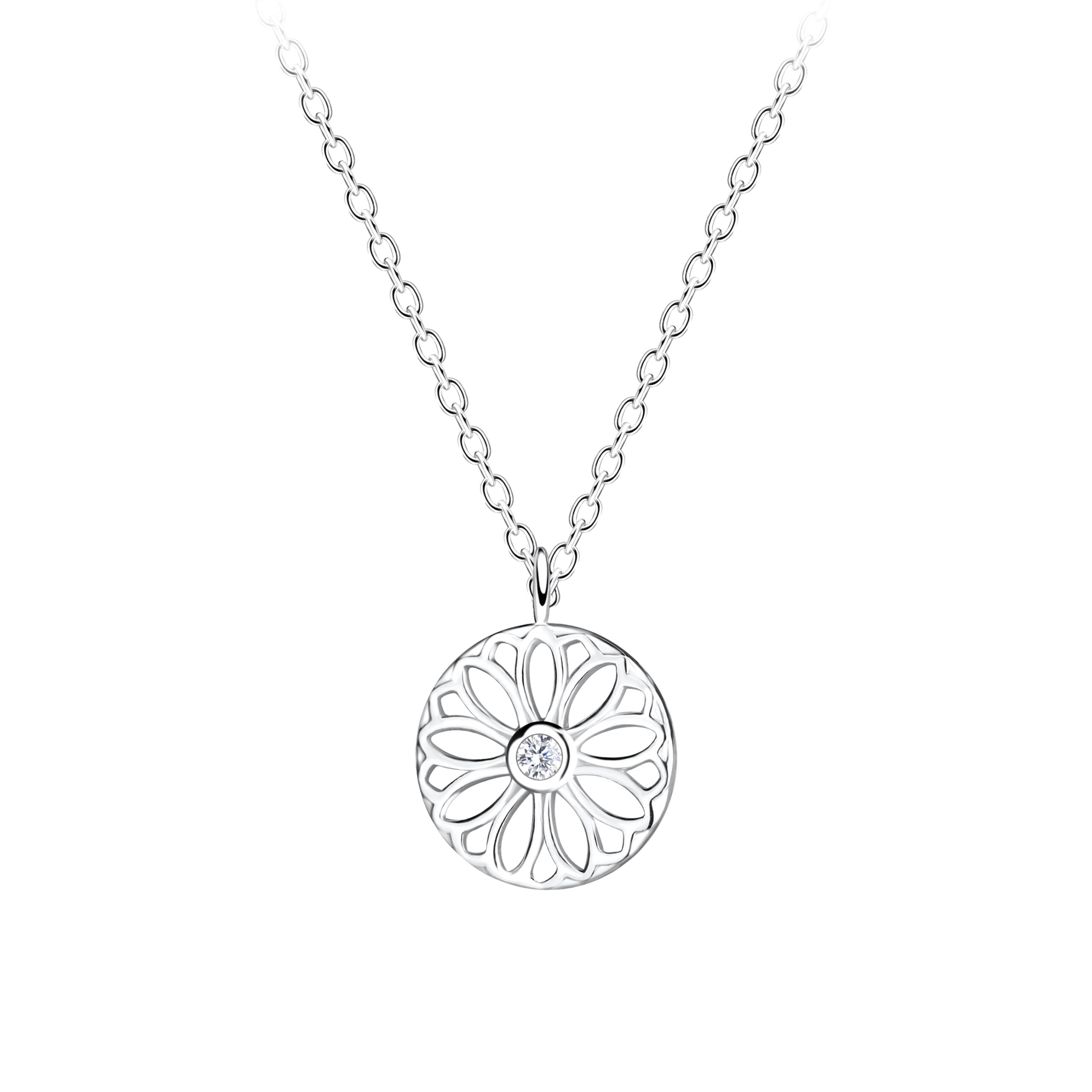 Sterling Silver Filigree design Daisy with a CZ center. Comes with Sterling Silver 18″ chain.