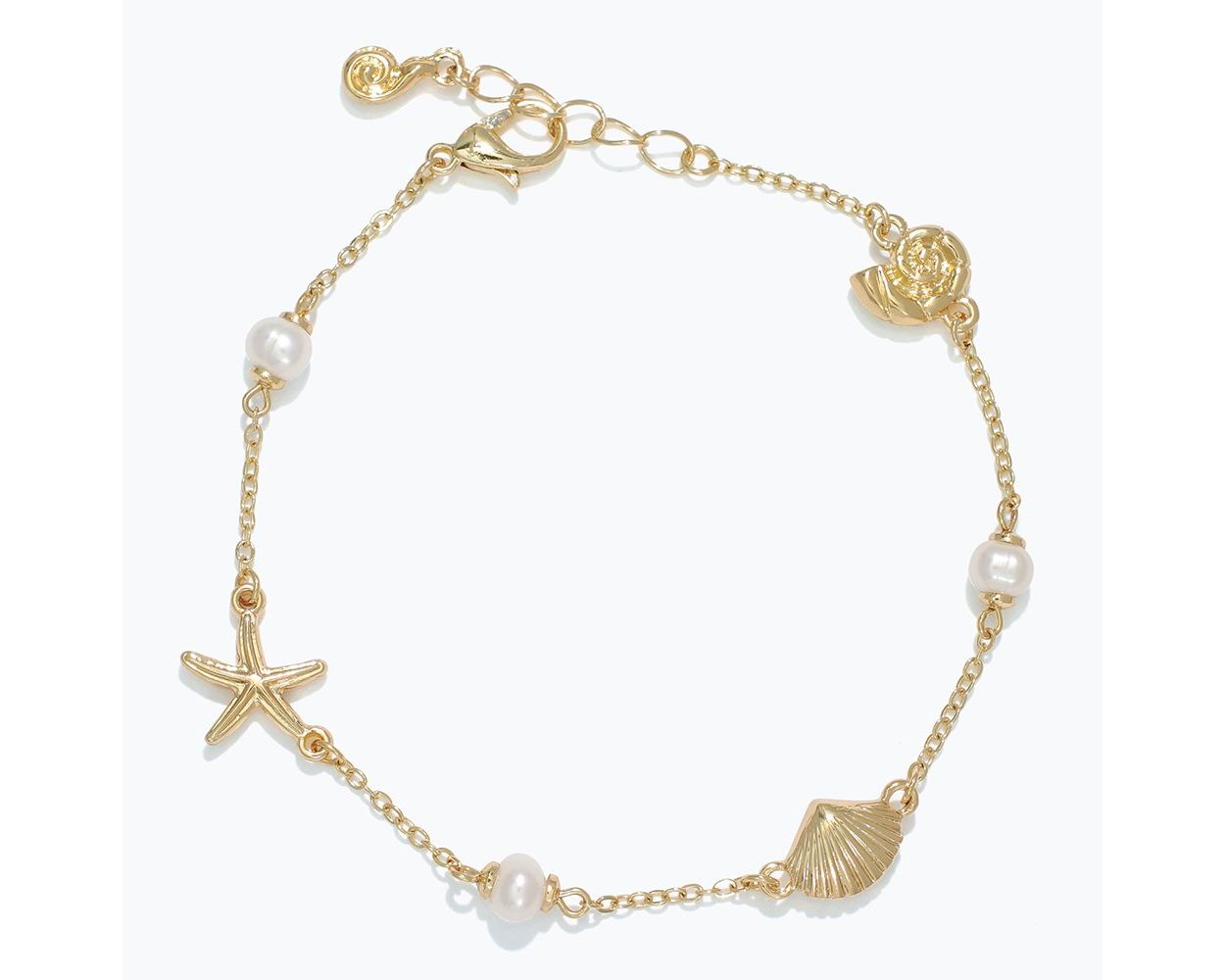 Linked Gold Starfish, Shell and Nautilus with Pearl Bracelet. Top Seller in the store!