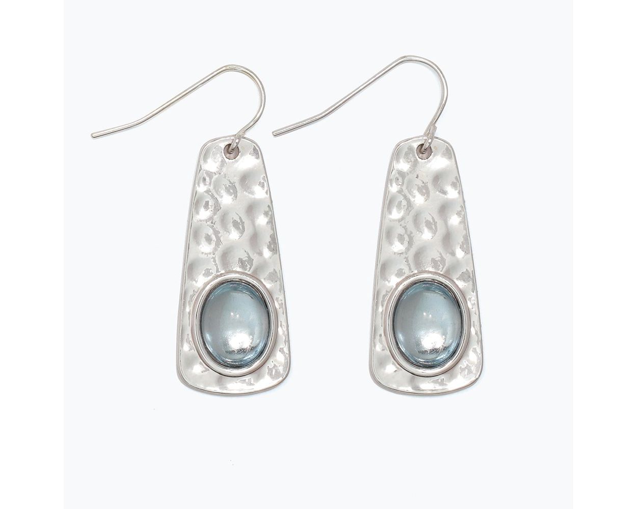 Silver Hammered Drop Earrings with Blue Inlay quantity