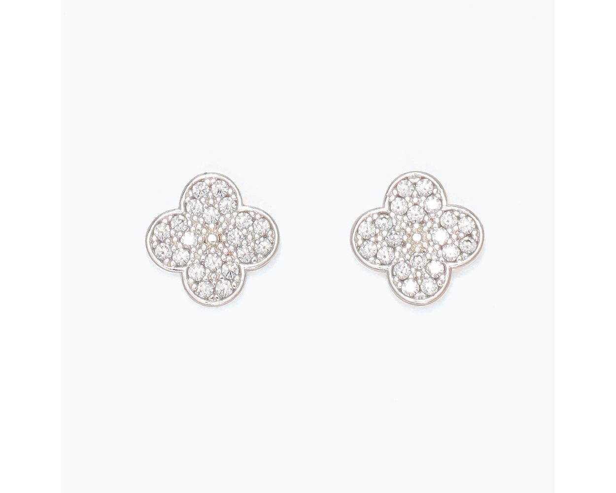 Sparkly Silver Clover Studs with Cubic Zirconia Inlay.